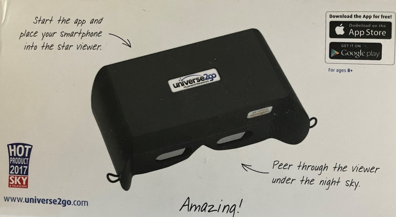 Download the app from Apple or Google Play, start the app and place your smartphone into the star viewer. Peer through the viewer under the night sky.